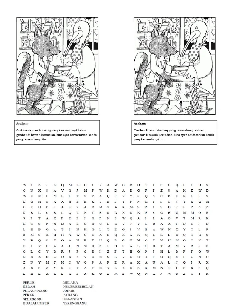 6 gambar permainan mencari benda yang tersembunyi berserta jawapan.
